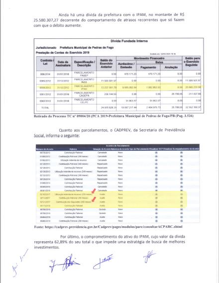 Em Campina, conforme o relator, conselheiro Antônio Cláudio Silva Santos, deixaram de ser recolhidos ao INSS a quantia de R$ 7,6 milhões. Dos valores devidos, o município cumpriu apenas 17,6% do valor a ser repassado à Previdência. O percentual de gastos com educação ficou na média de 22%, abaixo do limite mínimo de 25%. A Auditoria ainda registrou repasse ao Poder Legislativo acima do limite de 5%, permitido em Lei.