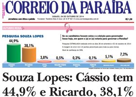 Se a eleição fosse hoje, segundo a consulta estimulada, Cássio teria 44,9%, contra 38,1% do candidato do PSB, Ricardo Coutinho. Em terceiro lugar, ficaria o candidato do PMDB, senador Vital do Rêgo Filho, com 3,8%, seguido pelo candidato Major Fábio, do Pros, com 0,5%. O candidato do PSTU, Antônio Radical, teria 0,3% e Tárcio Teixeira (Psol), 0,1%. Os votos brancos e nulos seriam 5,1%. Não sabe e não quis opinar 7,2%.